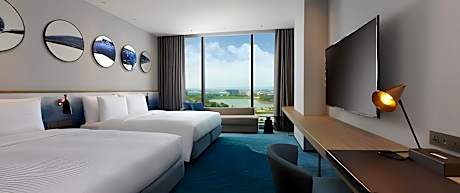 Great care is taken to ensure guests experience comfort through top-notch services and amenities.Stay connected with your associates, as complimentary Wi-Fi is available during your entire visit.To facilitate your arrival and departure, you can pre-book airport transfer services prior to checking in. The hotel offers taxi amenities to assist you in discovering your desired offerings in Taoyuan.When arriving by car, you'll be grateful for the on-site complimentary parking at hotel.The hotel offers reception amenities including concierge service and luggage storage to ensure a comfortable stay for guests.Whether it's an extended stay or simply needing fresh attire, laundromat and laundry service provided by hotel ensures your cherished travel garments stay spotless and accessible.Your stay will be comfortable with the presence of room service and daily housekeeping as an in-room amenity for your relaxation and enjoyment. To ensure the well-being and convenience of all visitors, smoking is strictly prohibited throughout the entire hotel.In order to ensure the utmost level of relaxation, the guestrooms feature an inviting design and are equipped with all basic necessities, creating a delightful stay experience.To ensure a pleasant stay, a selection of rooms at hotel come furnished with linen service, blackout curtains and air conditioning, all designed with your ease in mind.In select rooms, visitors can enjoy a touch of amusement with the availability of television and cable TV for their entertainment needs.Within specific rooms, a refrigerator, instant coffee and instant tea is conveniently available for your use.Understanding the significance of bathroom facilities in enhancing visitor contentment, hotel offers a hair dryer and towels within a few chosen chambers. Start your day stress-free at COZZI Blu as breakfast is made available for you on the premises.Various excellent meal offerings at hotel ensure that enticing and easily accessible options are constantly available.Upon your arrival, don't miss experiencing bar for enjoyable in-house evening entertainment. Throughout the day, engage in the entertaining activities available at COZZI Blu. Guests who enjoy maintaining their fitness regimen while on holiday can visit the fitness center provided by hotel.