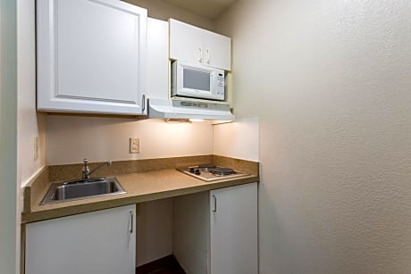 This nonsmoking room features a stovetop, microwave and refrigerator. There is also a dining area and work desk. Cable TV is provided.