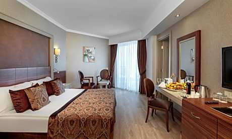 Experience an abundance of unparalleled facilities and features at Side Charm Palace. Maintain seamless communication using the complimentary Wi-Fi at hotel. Effortlessly arrange transportation to and from the airport using the hotel's airport transfer services.Discover the wonders of Manavgat with ease by utilizing the services provided by car hire and shuttle.For visitors traveling by automobile, complimentary parking is available. During your stay at this fantastic hotel, the attentive front desk personnel can provide you with a range of amenities such as concierge service, luggage storage and safety deposit boxes.Obtaining passes for the town's top entertainments becomes effortless with hotel's ticket service. During chilly days and evenings, the hotel provides an in-house fireplace to ensure your warmth. At the hotel, utilize the on-site dry cleaning service and laundry service to maintain your beloved travel attire fresh, allowing you to bring fewer clothes. Craving relaxation? Make the most of your stay at the Side Charm Palace with convenient amenities like 24-hour room service, room service and daily housekeeping at your disposal. For all your minor, last-minute requirements, the convenience stores can promptly cater to them, eliminating the need to venture out.Kindly note that smoking is prohibited in the hotel to ensure fresher air for all visitors.For visitors wishing to smoke, designated smoking zones can be found. At Side Charm Palace, every guestroom is provided with convenient amenities and fittings to ensure a comfortable stay.Enhance your experience at hotel with the knowledge that certain rooms are equipped with linen service and air conditioning for your convenience.A few accommodations within Side Charm Palace offer unique design elements such as a balcony or terrace. Certain rooms boast in-room amusement features such as television and cable TV, offering guests an enjoyable stay. In select rooms within the hotel, bottled water, a coffee or tea maker, instant coffee, instant tea and mini bar is available to cater to your requirements when desired.It is worth noting that certain guest bathrooms feature a hair dryer and toiletries for your convenience. Begin your day carefree at Side Charm Palace, as complimentary breakfast is offered for your convenience. At the hotel, an assortment of easily accessible and delicious meal choices are available to satisfy your appetite whenever it strikes.Create unforgettable moments with your fellow voyagers just steps away, at hotel's bar and nightclub, for a delightful evening together.At the hotel, discerning guests can also enjoy on-site culinary facilities like shared kitchen tailored to their preferences.During your stay at hotel, an array of engaging activities and amenities guarantees a delightful experience. During your stay, don't forget to allocate some moments to experience the readily available shoreline. Conclude your holiday perfectly with a visit to massage, hot tub, salon, solarium, steam room, spa and sauna on your final days.Be sure to drop by the pool at hotel at least once during your stay.At Side Charm Palace, utmost care is taken to ensure guests' comfort. Relish your preferred beverage in your swimwear by the hotel's poolside bar. Discover the fitness amenities at hotel to maintain your health and strength during your getaway.