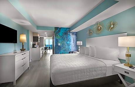 Rooms are equipped with a microwave, small refrigerator, coffee-making facilities, and ironing amenities, ensuring all the comforts of home. Whether lounging by the pools, floating along the lazy river, or enjoying the vibrant local attractions like Family Kingdom Amusement Park and Broadway at the Beach, guests find endless entertainment and relaxation opportunities. Crown Reef Beach Resort and Waterpark promises a memorable Myrtle Beach getaway filled with fun, comfort, and convenience.