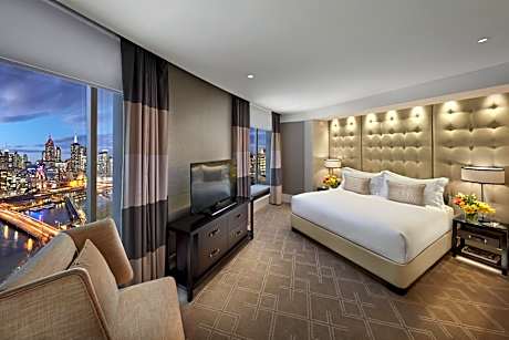- Spectacular city and bay views through floor-to-ceiling windows, enhancing the room's ambience