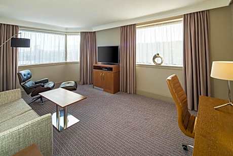 Only a few minutes’ walk from the SEC campus, the 4-star Crowne Plaza Glasgow overlooks the River Clyde. It has a leisure club with a pool and spa, as well as a maritime-inspired restaurant and bar. Glasgow Science Center and BBC Scotland are both just a short walk across the river over the bridge from the Crowne Plaza. The city center is about 1 mile away, and the Exhibition Center Rail Station is 0.4 miles’ walk. Each bedroom has air-conditioning and a cable TV with pay-per-view movies. Some rooms have a seating area, while all have 24-hour room service and city or river views. The Club has a sauna, gym and steam room, with a range of relaxing spa treatments on offer in the Riverside Beauty . The hotel’s Mariner restaurant serves a creative menu of seasonal Scottish cuisine with views of the river. The relaxed Mariner Bar stocks a range of whiskeys. Please note: The hotel is located outside the Low Emission Zone (LEZ).
