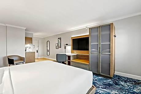 -Located in the heart of Downtown Orlando just steps away from the area’s most popular Entertainment & Business Venues just minutes from the Kia Center, Camping World Stadium, Dr. Phillips Performing Arts, and Downtown Lake Eola Park. Conveniently offering complimentary shuttle transportation within a 3 mile radius. -All Standard and Premium Rooms are 329 sq. ft. featuring a 55” flat screen, a wet bar, mini refrigerator, Keurig coffee maker ,and microwave adorns the kitchenette area. All suites are 652 sq. ft. featuring a fully equipped kitchen, separate living and sleeping area with a 65” flat screen and a King bed, sleeper sofa, and full bath with a walk-in shower and soaking tub. -Enjoy a variety of food and drink options throughout the day from fine dining at our full-service Bite Bistro & Wine Bar, to light meals at our lounge & poolside patio, or relax at your leisure with convenient in-room dining. Our full-service hotel includes state of the art fitness center, 24-hour business center, heated outdoor pool and whirlpool.