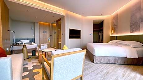 Crowne Plaza Huzhou By IHG provides flawless service and all the necessary facilities for visitors. Remain linked during your visit by utilizing the complimentary internet access available.Services offered by taxi and car hire at the hotel ensure effortless exploration of Huzhou.The hotel offers complimentary parking for guests who arrive with their own mode of transport. Effortlessly plan your daily activities and travel requirements with concierge service, express check-in or check-out, luggage storage and safety deposit boxes provided by the front desk services. Securing top-notch tickets and reserving prime dining spots become effortless through assistance from the hotel's tours. For extended visits or whenever required, the dry cleaning service and laundry service ensures your preferred travel garments remain clean and accessible.During leisurely days and evenings, in-room amenities such as 24-hour room service, room service and daily housekeeping enable you to maximize your stay in the room.The hotel is completely smoke-free. Crafted for coziness, every guestroom provides an array of features, guaranteeing a tranquil night's sleep while maintaining the level of comfort. For an elevated experience at hotel, select rooms are equipped with air conditioning to improve your stay. At Crowne Plaza Huzhou By IHG, a selection of rooms can be found that showcase unique design elements such as a balcony or terrace.For certain chosen rooms, guests can enjoy in-room amusement like television and cable TV as a part of their stay.Rest assured that your hydration needs will be met, as some guestrooms are equipped with a refrigerator and mini bar. It is worth noting that certain guest bathrooms feature toiletries and bathrobes for your convenience. Each morning at Crowne Plaza Huzhou By IHG, a scrumptious, homemade breakfast kick-starts the day.During your visit, indulge in a range of delightful culinary choices at hotel to enhance your experience.Experience a fantastic evening effortlessly! Relish an entertaining night without venturing beyond the confines of the bar.Snack vending machines operate around the clock, providing you with easy access to treats regardless of the hour. During your stay at hotel, an array of engaging activities and amenities guarantees a delightful experience.Begin your holiday perfectly by taking a plunge into the swimming pool.Eliminate those holiday calories by stopping by hotel and making use of their well-equipped exercise amenities.
