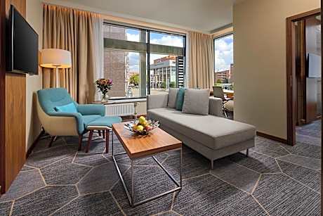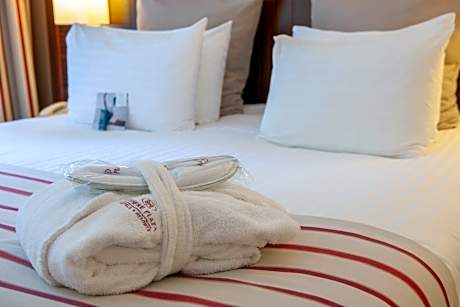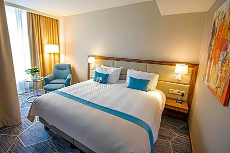 Crowne Plaza Maastricht, an IHG Hotel is less than a 15-minute walk from the Vrijthof in the center of Maastricht. It features a 24-hour reception and terrace with views over the River Maas. All of the rooms at Crowne Plaza Maastricht have a seating area with a cable TV. Each room is supplied with a bathrobe, a mini-bar, work desk and tea and coffee making facilities. The beds have quality linen and pillows, and matress pads. Guests can enjoy a drink at the fireside in the bar. Crowne Plaza Maastricht is a 10-minute walk from the Bonnefanten Museum. Maastricht Railway Station is less than 10 minutes' walk from the hotel and Maastricht Aachen Airport is 8.1 mi away.