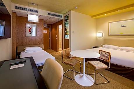 The Crowne Plaza is a luxury hotel at the Padova Ovest exit of the A4 Motorway, 15 minutes' drive from Padua center by bus. It offers a parking, a gym and Wi-Fi, all free. Rooms at Crowne Plaza Padova are spacious and modern with large work areas and a laptop safe. They feature a TV with satellite and pay-per-view channels, bathrobes and slippers. Aquattro restaurant serves traditional Italian cuisine, seasonal specialties and a wide choice of wines from the Veneto region. The hotel is 1640 feet from the Limena industrial area and 15 minutes' drive from the PadovaFiere convention center. Padua's volleyball, rugby and football stadiums are all less than 15 minutes away by car.