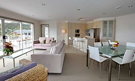 Crowsnest Apartments offers self-contained apartments overlooking Mercury Bay, just a 2-minute walk from Whitianga town center. The rooftop sun terrace features 360-degree views of Whitianga. Free WiFi is included. Free parking is available for 2 cars per apartment. Each modern apartment at Crows Nest Whitianga features a fully equipped kitchen with dishwasher and microwave. Laundry facilities, satellite TV and a DVD player are also provided. All apartments have a private balcony or patio, many with sea views. Most apartments have 2 or more bathrooms. The rooftop terrace includes sun loungers, plus outdoor tables and chairs. Crowsnest Apartments are a 1-minute walk from Buffalo Beach. The Lost Spring Thermal Hot Pools are a 2-minute drive away.