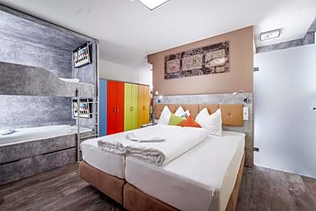 Opened in December 2016, Cubo Sport & Art Hotel is located in Sankt Johann in Tirol, 1312 feet from the cable car. It offers an outdoor activities center, an art gallery, the Sky Lounge with panoramic mountain views, a sauna, and free WiFi. Drinks and lounge food are available at the Sky Lounge. On check-in guests receive a ticket offering free use of local public transport. Guests at Cubo Sport & Art Hotel also enjoy free use of an indoor and outdoor swimming pool, 1312 feet away. A parking garage is available on site at a surcharge, and the train station is 2297 feet away from the Cubo Sport & Art Hotel.