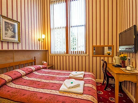 In Edinburgh’s West End, the Cumberland Hotel is located in attractive grounds and offers limited paid parking. Parking can be booked and paid on arrival subject to availability. Princes Street is within easy reach and Edinburgh Airport is a 16-minute drive away. A full Scottish breakfast, along with continental and vegetarian options, is available each morning. There is a residents' lounge, 2 bars and beer gardens at the front and rear for guests to relax and enjoy a drink outdoors. Cumberland Hotel is set within 2 elegant historically listed Victorian buildings, with original features and large rooms. Each room has a TV and facilities for making tea and coffee. There is a bus stop just outside the hotel, with a regular service to and from the city center. Murrayfield International Rugby Ground, Edinburgh International Conference Center and Haymarket Rail Station is less than 10 minutes’ walk from the building.