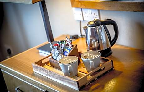 An private bathroom, tea/coffee making facilities and a flat-screen TV feature in this room.