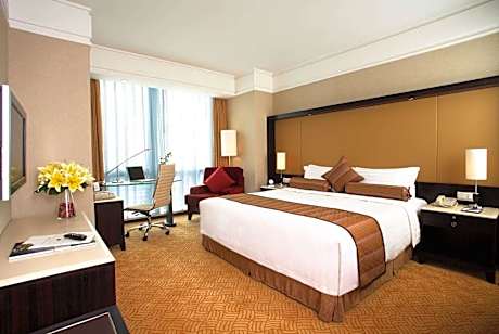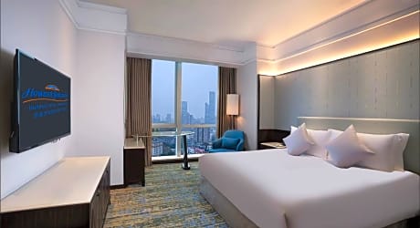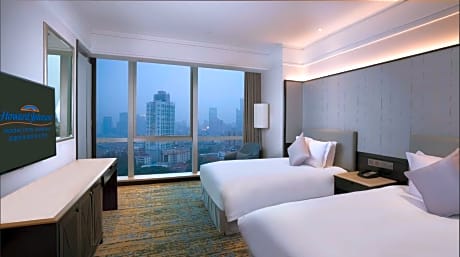 Howard Johnson Huaihai Hotel is located near the crossroads of Huaihai Road and Fenyang Road in downtown Shanghai. It features a fitness center, 2 dining options and rooms with free internet. Xintiandi is a 5-minute drive away and People's Square is a 10-minute drive away. Huaihai Howard Johnson is only a 2-minute walk from South Shaanxi Road Subway Station (line 1 and 10). It is a 20-minute drive from Shanghai Railway Station while Shanghai Hongqiao Railway Station and Airport can be reached by a 45-minute drive. Pudong International Airport is a 1-hour drive from this hotel. The nonsmoking rooms at Howard Johnson come with modern décor, and are fitted with floor-to-ceiling windows. Each is well-equipped with a 32-inch flat-screen TV and bathtub. The restaurant serves a variety of Chinese and Western dishes. Light snacks and refreshing beverages are available at the lobby bar. Guests can exercise at the fitness center. The hotel provides currency exchange and ticketing services. Luggage storage facilities are available at the 24-hour front desk.