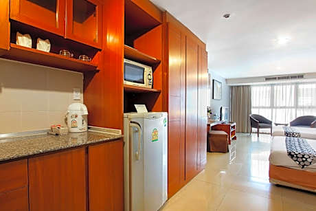 Location The hotel is conveniently located on Sukhumvit Road, a main road and one of the most tourist-friendly zones for shopping, dining and entertainment. The location is also nearby the central business district and has easy sky train or underground links to many temples and ancient attractions. The closest train station is about 300 metres from the hotel. Facilities The apartment hotel was built in 2004. Guests are welcomed at the accommodation, which has a total of 78 rooms. A lobby and a reception are available to travellers. Most storeys are accessible by lift. Amenities include a safe. Wireless internet access is available to guests in the public areas. Among the culinary options available at the hotel are a restaurant, a dining area, a breakfast room and a bar. Additional facilities at the apartment hotel include a TV room. Those arriving in their own vehicles can leave them in the car park of the accommodation. Additional services include room service and a laundry service. Rooms Each of the rooms is appointed with air conditioning, a kitchen and a bathroom. Most rooms feature a balcony with a view for guests' enjoyment. The carpeted rooms feature a double bed or a king-size bed. There is also a safe. Additional features include a fridge, a mini fridge, a microwave and a tea/coffee station. An ironing set is also available for travellers' convenience. Little extras, including internet access, a telephone, a TV, a DVD player and WiFi, contribute to a great stay. Slippers are laid out in each of the rooms. The bathrooms are fitted with a shower and a bathtub. A hairdryer can also be found in each of the bathrooms. Sports/Entertainment The hotel offers attractions including sport and entertainment opportunities. The apartment hotel features an outdoor pool. A range of options are available, including a gym and massage treatments. Meals Guests can choose from a range of snacks and meals including breakfast, lunch or dinner. Payment The following credit cards are accepted at the accommodation: VISA and MasterCard.