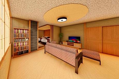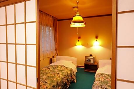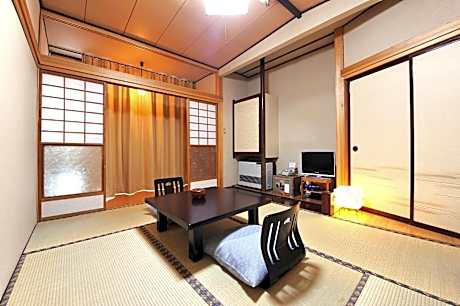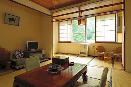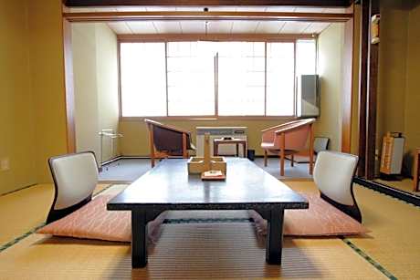 This quadruple room features a shared bathroom and heating. The air-conditioned quadruple room provides a flat-screen TV, a safe deposit box, an electric kettle and yukata. The unit offers 6 futons.
