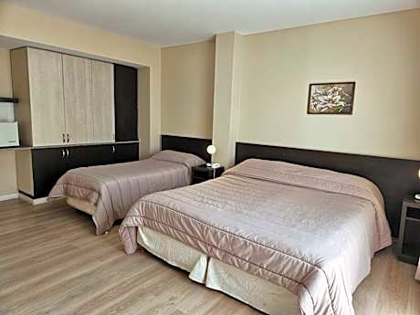 It has 1 king-size bed, 2 single beds, a private bathroom, flat screen TV, air conditioning, heating and mini-bar.