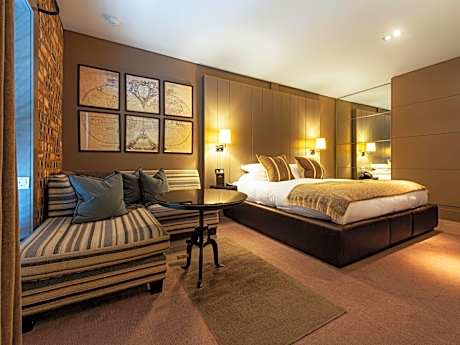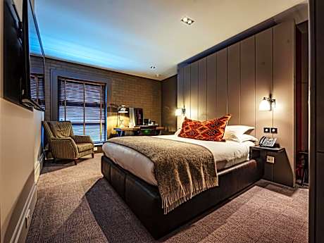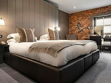 Our modern Classic double Room features a double bed with en-suite shower and 48" HDTV. In room amenities include Sky package with Sky Sports, crisp cotton linen and sumptuously soft bedding, rainfall shower, luxury toiletries, tea and coffee tray, bottled water, iron & ironing board, complimentary WiFi, hairdryer.
