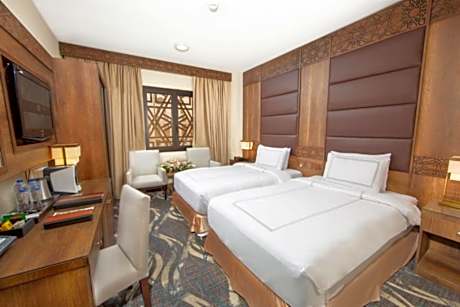 At Dallah Taibah Hotel, exceptional service and top-notch amenities create a memorable experience for guests.Complimentary internet access is available in the hotel to ensure you stay connected during your visit.Arrange your trips to and from the airport using the hotel's convenient transportation services booking.Amenities at taxi offered by Dallah Taibah Hotel simplify the organization of your excursions, tourist activities, and other adventures in Medina.For guests with their own vehicle, parking facilities are provided.Continuously receive the support you require through front desk amenities such as concierge service, express check-in or check-out, luggage storage and safety deposit boxes.At the hotel, their ticket service and tours is also capable of assisting with booking tickets and securing reservations for entertainment and adventures.Always look your best in your preferred attire with the dry cleaning service and laundry service provided at Dallah Taibah Hotel. Craving relaxation? In-room amenities such as 24-hour room service, room service and daily housekeeping allow you to maximize your time spent inside the room. Due to health concerns, smoking is strictly prohibited within the entire premises of hotel.Accommodations come equipped with all the conveniences required for a restful night's slumber.A selection of rooms feature linen service, blackout curtains and air conditioning to ensure your comfort and convenience.A few accommodations at Dallah Taibah Hotel also include unique design elements like a separate living room.A few chosen rooms are equipped with daily newspaper, television and cable TV to ensure guest amusement.In certain rooms, the hotel offers visitors access to a refrigerator, a coffee or tea maker, bottled water, instant coffee, instant tea and mini bar. Dallah Taibah Hotel offers a hair dryer, toiletries, bathrobes and towels in the restrooms of specific accommodations.An additional advantage for guests is the executive lounge, which offers an outstandingly cozy and excellently furnished environment for relaxation. A delightful breakfast is the perfect way to begin your day, and at Dallah Taibah Hotel, you can always indulge in a scrumptious meal on-site. All adore a delightful cup of coffee! An on-site coffee shop ensures you can relish a cup of authentic, freshly-brewed coffee every morning -- or whenever you desire it. Allow your journey to be free from the pangs of hunger! On-site eateries offer delicious and accessible meal choices. At Dallah Taibah Hotel, catering to your unique requirements is our priority. Guests with particular dietary preferences can choose from an assortment of dishes, featuring kosher and halal choices among other options. At Dallah Taibah Hotel, guests can take pleasure in the delightful recreational amenities provided for their entertainment.At the hotel fitness center, you have the option to engage in your daily exercise routine or simply alleviate your jet lag by breaking a sweat. License Number(s): 10001873