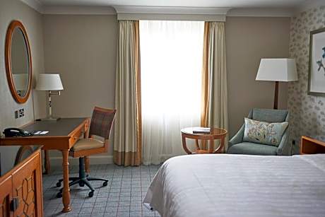 Set among 1000 acres of beautiful parkland with two 18-hole golf courses, this historic country hotel, built in 1725, offers luxurious spa and leisure facilities, and informal and fine dining restaurant options. All of the spacious rooms at the Dalmahoy Hotel & Country Club offer 32-inch flat-screen TVs and private bathrooms. Rooms also include tea/coffee making facilities and a mini-fridge. As well as an impressive 18-hole golf course, Dalmahoy also includes both a championship golf-course and a PGA-approved golf academy within its expansive and scenic grounds. Freshly prepared cuisine can be enjoyed at The Pentland, the hotel’s award-winning restaurant, alongside panoramic views of Dalmahoy’s green parkland. The Brasserie Restaurant and James Braid Bar also offer informal dining. Dalmahoy Hotel & Country Club also features a leisure club, featuring modern gym equipment and complimentary fitness classes. Guests can make use of the indoor swimming pool, sauna, steam room and tennis facilities. Guests can enjoy free WiFi throughout the hotel and free parking is available. The hotel is immediately accessible from the A71 road. The M8 motorway is just 2 minutes away, and Edinburgh is 20 minutes’ drive.