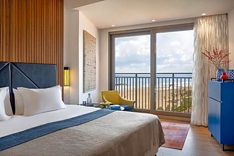 The Dan Accadia is a hotel directly located on Herzliya’s sandy beach. This luxurious hotel offers contemporary guest rooms, excellent leisure facilities and a good choice of restaurants. Complimentary WiFi is provided in all the rooms and public areas. There are 208 guest rooms at the hotel offering spacious and comfortable accommodations. The rooms in the main hotel building overlook the pool and the sea; the pretty garden chalet rooms have private terraces, Some of them have a private plunge pools. Leisure facilities at the Dan Herzliya include a large outdoor swimming pool, 6 tennis courts and a fully-equipped gym. Diving and horse-riding are also available close to the hotel. For children, there is a separate swimming pool, a playground and an activity program during the main school holidays. The hotel has a good selection of restaurants offering international food. Guests can also dine al fresco on the hotel’s terrace overlooking the beach. The Dan Accadia Herzliya is located directly on the beach and is just a short walk from the Herzliya Marina and its adjacent mall, where there are many cafés, shops and restaurants.