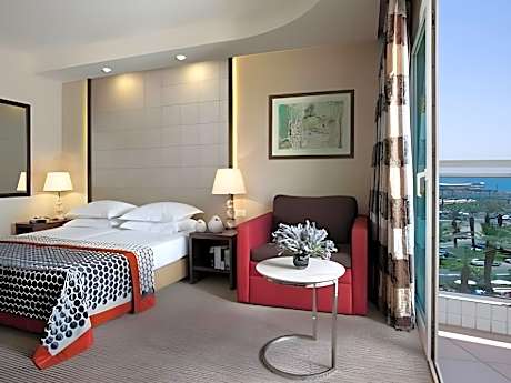 Set in Eilat's North Beach area, the Dan Panorama overlooks the lagoon. It features an outdoor pool and wellness center. Rooms come with cable TV and a balcony. Free Wi-Fi and parking are provided based on availability. A generous Israeli buffet breakfast is served daily in the Dolphin dining room, and includes homemade bread, fresh fruit and eggs prepared to order. Baby food is available as well, upon previous request. All air-conditioned rooms have floor-to-ceiling windows, and many offer lagoon views. Some rooms include free access to the exclusive Club Lounge, where snacks and refreshments are served. Children have an entertainment club where they can enjoy crafts, art and computer activities. There is a children's pool, an inflatable park and a playground. The lively seafront promenade in front of the hotel hosts shops, bars and restaurants.