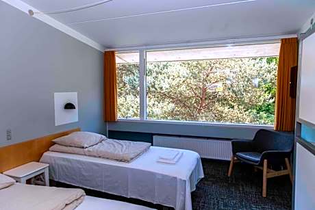 Surrounded by nature, this concrete architectural gem and hilltop hotel is 15 minutes' walk from central Ebeltoft. It provides free parking and views of the city, Ebeltoft Bay and Mols Bjerge National Park. The unique buildings with grass-covered roofs are designed by the influential concrete architects Friis & Moltke and blend almost seamlessly into the hilly landscape. All rooms have a private bathroom with shower. Free WiFi is available. All rooms have a direct view to the surrounding nature. Facilities at Hotel Toppen af Ebeltoft include a playground for children, beach volleyball, a cousy fireplace and direct access to walking- and bike routes. A 10-15 minutes walk through the hills by a nice path you find Ebeltoft Sports Center, which has a gym, a indoor swimming pool and sports facilities such as Padel tennis. Please ask at the reception if you want to use our sport facilities. The surrounding Mols Bjerge National Park offers opportunities for hiking and fishing. Hotel Toppen af Ebeltoft"s staff can provide tourist information and recommend nearby attractions. Although the restaurant is located high on the town's hilltop, the distance to the local fishmonger at the harbor is short. One of the most popular dishes here is Toppen’s stjerneskud, which is a Danish dish featuring fish and shrimp on rye bread. The team at Hotel Toppen promises a welcoming, informal atmosphere along with really good food.