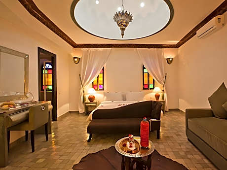 With a courtyard swimming pool and a terrace with views of the medina, this riad offers air-conditioned rooms a 5-minute walk from Jamaâ El Fna Square. The Bahia Palace is 1476 feet away. Guest rooms at Riad Dar Anika have a traditional Moroccan decor and are equipped with free Wi-Fi access. A welcome pack with mineral water and Moroccan pastries is offered in each room upon arrival. A Moroccan breakfast with fresh fruit and cakes can be enjoyed on the terrace. Guests can also sample traditional Moroccan dishes. Staff cater to guests’ needs 24 hours a day. Additional facilities at the Riad include a lounge with a TV and fireplace.