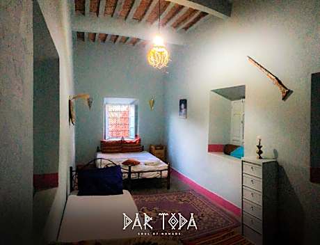 Dar Toda - Zagora guest house is a recently renovated guest house in Zagora where guests can make the most of its garden and shared lounge. With city views, this accommodation features a patio. The guest house provides mountain views, a sun terrace, a 24-hour front desk, and free Wifi is available throughout the property. A balcony with an outdoor dining area and garden views is offered in all units. At the guest house, all units are equipped with bed linen and towels. The breakfast offers vegetarian, vegan options and pancakes and cheese are being served. Guests can eat at the on-site restaurant, which is open for dinner, lunch, and high tea. Yoga classes and fitness classes are organized at the fitness room on site. For guests with children, the guest house offers an indoor play area and outdoor play equipment. With an outdoor fireplace and a picnic area, this guest house offers plenty of opportunities to relax. Zagora Airport is 8.7 miles away, and the property offers a paid airport shuttle service.
