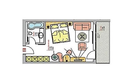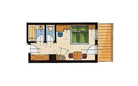 Double room with a balcony, and a shower and bath.