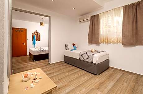 Das Maistrali 1 features a garden, shared lounge, a terrace and restaurant in Sarti. Providing a bar, the property is located within a 5-minute walk of Sarti Beach. The property provides room service, an ATM and organizing tours for guests. The hotel will provide guests with air-conditioned rooms offering a closet, an electric tea pot, a fridge, a safety deposit box, a flat-screen TV, a balcony and a private bathroom with a shower. A continental breakfast is available at Das Maistrali 1. The accommodation has a playground. Activities such as hiking, fishing, snorkeling can be enjoyed in the surrounding areas, and guests can relax along the beachfront. Thessaloniki Airport is 80 miles away, and the property offers a paid airport shuttle service.