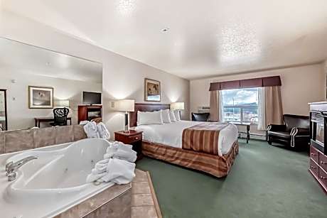 Grande Cache Inn & Suites has accommodations in Grande Cache. With a fitness center, the 2-star hotel has air-conditioned rooms with free WiFi, each with a private bathroom. The hotel has a sauna and a shared lounge. Rooms have a coffee machine, while certain rooms come with a kitchenette with a fridge, a microwave and a toaster. The rooms in the hotel are equipped with a TV and a hairdryer. Staff at Grande Cache Inn & Suites are always available to provide advice at the reception. Grande Prairie Airport is 118 miles from the property.