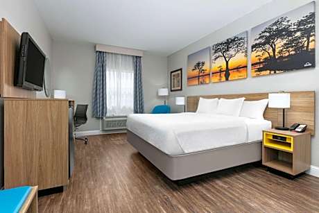 This Arkansas hotel offers guests a daily continental breakfast and rooms with free Wi-Fi. It is located 9 miles from Little Rock Air Force Base. Crisp white linens and soft colors decorate each guest room at Days Inn & Suites Cabot. Rooms are furnished with a flat-screen TV and a refreshment center including a microwave, refrigerator, and coffee machine. An indoor swimming pool are featured on site at Cabot Days Inn. Other convenient amenities include a business center and a guest launderette. William J. Clinton Presidential Center is 22 miles from the hotel. Beebe, Arkansas is within 20 minutes’ drive.