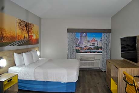 In San Antonio, Days Inn & Suites North Stone Oak is only 8.3 miles from Six Flags Fiesta Texas. It has an outdoor pool with furnished terrace and features air-conditioned guest rooms. Stone Oak Days Inn & Suites rooms have modern wood furnishings. They include a microwave and a small refrigerator, as well as cable TV and free Wi-Fi. Some rooms feature whirlpool bathtubs. Each morning, Days Inn North serves a full-service hot breakfast bar. Several restaurants serving seafood and international cuisine are less than 5 miles from the hotel. Guest can visit the fitness center that includes cardio equipment. Free newspapers and coffee are available in the lobby. The hotel is only 4 miles from San Antonio International Airport and is 11 miles from San Antonio Zoo. The hotel has a 24-hour front desk service and on-site public parking.