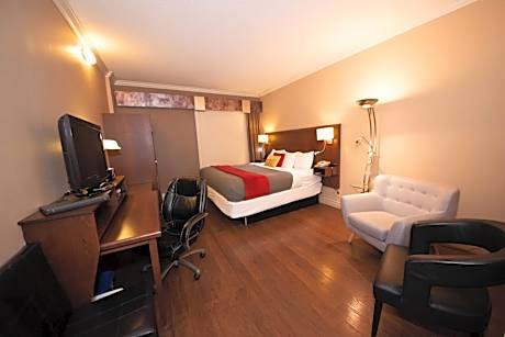 Days Inn by Wyndham Berthierville has free bikes, fitness center, a shared lounge and bar in Berthierville. With free WiFi, this 3-star hotel offers a 24-hour front desk and an ATM. The property is allergy-free throughout and is located 26 miles from Regional Park Chutes-Monte-a-Peine et des Dalles. All guest rooms come with air conditioning, a flat-screen TV with satellite channels, a fridge, a coffee machine, a shower, free toiletries and a closet. Rooms are complete with a private bathroom equipped with a hairdryer, while some rooms at the hotel also feature a seating area. All rooms will provide guests with a microwave. The breakfast offers buffet, continental or gluten-free options. Days Inn by Wyndham Berthierville has a grill. Guests at the accommodation will be able to enjoy activities in and around Berthierville, like cycling. A business center and vending machines with snacks and drinks are available on site at Days Inn by Wyndham Berthierville. Club de Golf Montcalm is 25 miles from the hotel. Montréal/Saint-Hubert Airport is 50 miles from the property.