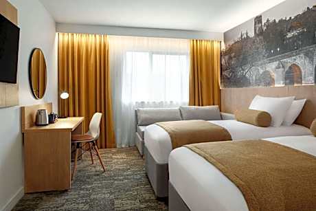 With modern rooms, free Wi-Fi access and free parking Super 8 by Wyndham Durham is just off junction 61 of the A1 (M), about 4 miles from Durham city center. Super 8 by Wyndham Durham is set within the Roadchef motorway service area at Bowburn Interchange. On site is a Costa coffee shop, a restaurant and a meeting space for up to 15 people. The bedrooms at Super 8 by Wyndham Durham include a 20-inch TV, tea/coffee facilities and a work desk. Durham Tees Valley Airport is about 18 miles away, and can be reached in about 30 minutes' drive.