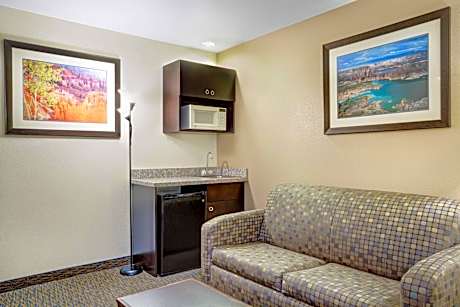 Located 5 minutes’ drive away from Lake Powell, this Page hotel features a seasonal outdoor swimming pool and hot tub. Free Wi-Fi and a daily grab and go breakfast breakfast are provided. A flat-screen cable TV is featured in each room at Days Inn and Suites by Wyndham Page Lake Powell. Ironing facilities are included. A business center is available for guest use. A gift shop is located on site. Free parking for over-sized vehicles is provided. The Grand Canyon is 145 miles away. Monument Valley is 2 hours’ drive away from Page Lake Powell Days Inn and Suites by Wyndham.