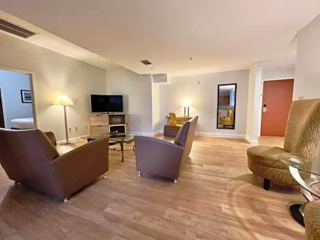 This hotel is 7.7 mi from downtown Lakeland and the Lakeland Center. The hotel offers an outdoor pool and fitness center. Complimentary WiFi is offered Days Inn and Suites Lakeland rooms include a flat-screen TV. The rooms are equipped with a coffee maker and work desk. For added convenience, a microwave and refrigerator are included. The hotel offers guests a daily continental breakfast. Days Inn and Suites Lakeland also features a business center perfect for guests that need to get work done. The Days Inn and Suites is within a 10-minute drive of the Lakeland Square Mall, which features shopping. Joker Merchant stadium is 2.2 mi away.