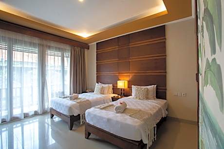 Located within the rolling green forest of Ubud, d'bulakan Boutique Resort Ubud offers an outdoor pool, on-site restaurant, spa, and free WiFi access in all areas of the property. It is about a 15-minute drive from the property to Bali Adventure Rafting starting point, and about a 20-minute drive to Elephant Safari Park in Taro. Ubud Palace and Ubud Art Market are reachable within about 10-minute drive. Getting to Ngurah Rai Internatinal Airport will take about 45 minutes by car. The rooms at d'bulakan are all air-conditioned and fitted with a cable TV, a mini-bar, a safety deposit box and a terrace with seating area overlooking the outdoor swimming pool. Each room also comes with an private bathroom featuring bath and shower facilities, slippers, bathrobes, and free toiletries. Other facilities you will find at this property include a 24-hour front desk, luggage storage, car hire, bike rental, and free shuttle service. Laundry service, massage treatments, and meeting/banquet facilities are also available with extra charges. As for dining option, d'ulakan Boutique Resort offers the on-site restaurant which serves international cuisines. Room service is also available should guests want to enjoy their meal in the privacy and comfort of their room.
