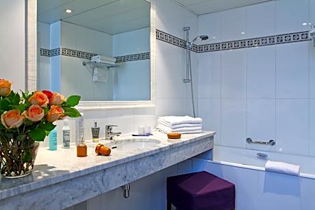 In a residential area just outside of Paris, this hotel sits on the Ile de la Grande Jatte, overlooking the Seine River. It offers rooms with river or courtyard views. Hotel De La Jatte is just a 15-minute walk from the Pont de Levallois – Bécon Metro stop, giving easy access to all of Paris’s attractions. The Bois de Boulogne, a large park, is just a 15-minute walk away. The Hotel De La Jatte has a stylish and modern decor and offers air-conditioned rooms and suites. Each is equipped with satellite TV and has a private bathroom. Iron facilities can be requested at the reception. Facilities at La Jatte include a 24-hour reception with express check-in, a elevator and a 24-hour bar. Guests can enjoy the daily breakfast in the glass-canopy dining room or in the comfort of their own room.