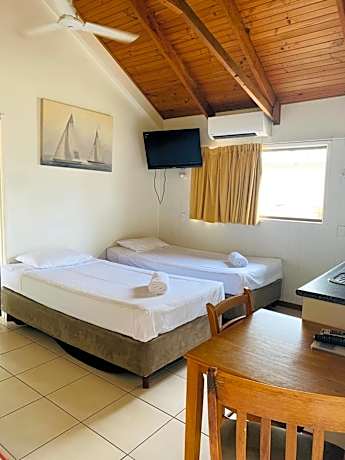 These studios and apartments feature a balcony area overlooking the Coral Sea or gardens. Each includes a fully equipped kitchen, air conditioning and ceiling fans. Airlie Beach Apartments are an easy 1-minute walk from the shops and restaurants of central Airlie Beach. It is just 5 minutes’ walk to Airlie Beach Lagoon. All apartments feature a large flat-screen TV, hairdryer and ironing facilities. The fully equipped kitchens include a fridge/freezer, microwave, free tea and coffee, and an oven or stove. Free off-street parking is available near each apartment. The tour desk can arrange trips around the Whitsunday Islands. Airlie Beach Apartments are 2 minutes' walk from the beach and only 0.9 mi from Abel Point Marina.