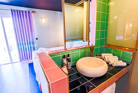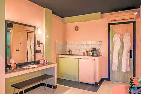 Welcome to The Wiki Woo, a brand new experience in Ibiza. Situated directly on the sunset coast of San Antonio with incredible panoramic views. Join us on our new sea front terrace boasting a huge outside bar. With quirky touches and art deco style decor The Wiki Woo is sure to be an experience like no other. With impressive cocktails and superb cuisine, It even features an exclusive Teppanayki table available for groups of up to 10 guests. Chill poolside relaxing underneath our pink palm leaves and enjoy excellent service throughout the day. Join us for an unforgettable stay in one of our uniquely designed rooms, luxuriously fitted for your comfort to accommodate your every need. We look forward to your visit. Boutique Hotel. Only Adults.