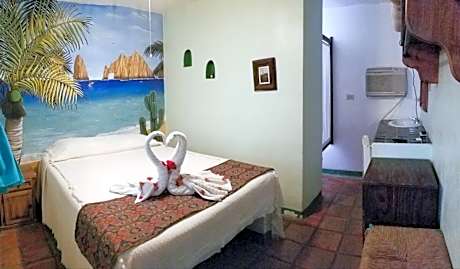 Ideally located in Cabo San Lucas, Cabo Inn has air-conditioned rooms, a garden, free WiFi and a shared lounge. This 2-star hotel offers a shared kitchen and a 24-hour front desk. The property provides a concierge service, a tour desk and luggage storage for guests. All guest rooms in the hotel are equipped with a flat-screen TV with cable channels. All rooms have a private bathroom with a shower and free toiletries. Cabo Inn has a terrace. The area is popular for hiking and cycling, and car rental is available at the accommodation. Medano Beach is a 10-minute walk from Cabo Inn, while Marina Cabo San Lucas is 500 yards away. Los Cabos International Airport is 26 miles from the property, and the property offers a paid airport shuttle service.