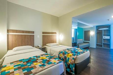 Das Castelmar Hotel begrüßt Sie in Florianópolis mit einem Außenpool und einer hauseigenen Bar. Es bietet einfachen Zugang zur Hercilio-Luz-Brücke und ist nur 1 km vom öffentlichen Markt entfernt. Kostenloses WLAN wird angeboten und Privatparkplätze stehen vor Ort gegen Gebühr zur Verfügung. Die Unterkunft ist haustierfreundlich. Alle klimatisierten Zimmer im Castelmar verfügen über Kabel-TV und eine Minibar. Es gibt ein eigenes Badezimmer und kostenlose Pflegeprodukte. Die Unterkunft verfügt außerdem über ein gut ausgestattetes Fitnesscenter und eine 24-Stunden-Rezeption. Das Kongresszentrum im Castelmar Hotel verfügt über geräumige Tagungsräume mit einer Gesamtfläche von 4,6 m². Ausrüstung und persönliche Betreuung sind ebenfalls verfügbar. Dieses 3-Sterne-Hotel ist auch nur eine kurze Fahrt vom Busbahnhof der Stadt und anderen beliebten Sehenswürdigkeiten wie dem Benjamin Constant Park entfernt. Der internationale Flughafen Hercílio Luz liegt 13 km von der Unterkunft entfernt. Das Castelmar Hotel liegt im Zentrum von Florianópolis und ist bequem über die kürzlich wiedereröffnete und revitalisierte Hercílio-Luz-Brücke zu erreichen, die die Haupttouristenattraktion der Stadt darstellt! Das Hotel liegt 1 km vom öffentlichen Markt, der Altstadt und dem Busbahnhof entfernt. Der internationale Flughafen Hercílio Luz ist 17 km entfernt. Wir bieten kostenloses WLAN in allen Bereichen des Hotels und einen privaten Parkplatz (siehe Preise). Im Castelmar ist auch Ihr Haustier willkommen (siehe Preise und Richtlinien). Alle unsere Zimmer verfügen über Klimaanlage, Kabel-TV und Minibar. Das Hotel verfügt über eine 24-Stunden-Rezeption, ein Fitnesscenter und das größte Kongresszentrum im Zentrum von Florianópolis.