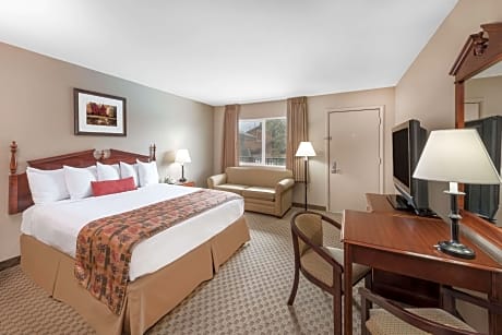 Located 2.5 miles from Show Low Regional Airport, this hotel features free Wi-Fi and a seasonal outdoor pool. A daily grab and go breakfast is included. A refrigerator, microwave and coffee maker are provided in all rooms at the Days Inn Show Low. Ironing facilities are offered in each room. Guests can enjoy a grab and go breakfast at the on-site restaurant, Show Low Cafe. A 24-hour reception is provided for guest convenience. Free parking for cars, trucks, buses, and RVs is offered at this hotel. A full sports bar and lounge is also located on site. Show Low Lake is 2.5 miles away. Hon-Dah Casino is 15 miles away from Show Low Days Inn.