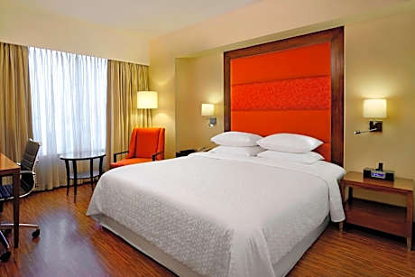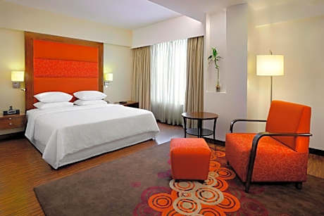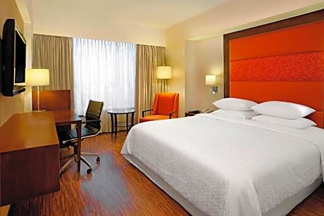 Experience an abundance of unparalleled facilities and features at Four Points by Sheraton Ahmedabad. Car hire offerings at the hotel enhance the ease of discovering Ahmedabad.Guests can avail parking facilities at the hotel.During your stay at this fantastic hotel, the attentive front desk personnel can provide you with a range of amenities such as concierge service and safety deposit boxes. For extended visits or whenever required, the dry cleaning service ensures your preferred travel garments remain fresh and accessible. Craving relaxation? Make the most of your stay at the Four Points by Sheraton Ahmedabad with convenient amenities like 24-hour room service, room service and daily housekeeping at your disposal.At Four Points by Sheraton Ahmedabad, every guestroom is provided with convenient amenities and fittings to ensure a comfortable stay.Certain rooms offer in-room amusement features such as the cable TV for your enjoyment.In select rooms within the hotel, instant tea and mini bar is available to cater to your requirements when desired. Essential restroom facilities are equally significant, and at the hotel, some visitor bathrooms offer a hair dryer to enhance your experience. Begin your day with a scrumptious on-site breakfast available each morning at Four Points by Sheraton Ahmedabad.Begin your day feeling refreshed and invigorated as you enjoy a delightful cup of quality coffee available at the cafe situated within the hotel. At Four Points by Sheraton Ahmedabad, they are committed to catering to your unique requirements. They offer a variety of meal choices, encompassing halal alternatives for those with special dietary preferences.