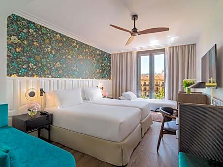 Das schicke H10 Casanova Hotel liegt zentral an Barcelonas Gran Via, 10 Gehminuten von der Plaza Catalunya und der Rambla entfernt. Es gibt einen Garten-Spa mit Whirlpool und Dampfbad. Das H10 Casanova ist im modernen Boutique-Stil eingerichtet und bietet klimatisierte Zimmer mit Sat-TV und kostenfreiem WLAN. Es gibt eine Minibar und einen Safe und das moderne private Badezimmer ist mit einem Haartrockner und Pflegeprodukten ausgestattet. Zimmerservice ist ebenfalls verfügbar. Das hoteleigene Despacio Spa Center verfügt über eine Vichy-Dusche, ein Dampfbad und einen Whirlpool; Massagen sowie Gesichts- und Körperbehandlungen sind auf vorherige Anfrage gemäß Preisliste verfügbar. Das Hotel verfügt über ein À-la-carte-Restaurant und eine trendige Café-Bar. Es gibt eine 24-Stunden-Rezeption und am Tourenschalter können Sie ein Auto oder Fahrrad mieten. Die U-Bahn-Stationen Urgell und Universitat sind 300 m entfernt. Die Designerboutiquen des Paseo de Gracia erreichen Sie zu Fuß in 10 Minuten.