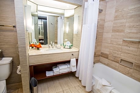 Nur 5 Gehminuten vom Eingang der Universal Studios Hollywood entfernt bietet dieses Hotel mehrsprachiges Personal und moderne Zimmer. Gäste können im Außenpool und im Whirlpool entspannen. Kabel-TV und eine iPod-Dockingstation gehören in den geräumigen, haustierfreundlichen Zimmern im Hilton Los Angeles-Universal City zur Standardausstattung. Durch die großen Fenster genießen Sie einen Blick auf die Stadt oder den Themenpark. Das Universal City Hilton bietet das Café Sierra in einem verglasten Atrium. Das Café serviert ein komplettes Tagesmenü mit kalifornischer, kontinentaler und chinesischer Küche in einem modernen, hellen Ambiente. Den Gästen stehen ein rund um die Uhr geöffnetes Businesscenter und ein modernes Fitnesscenter mit kompletter Ausstattung für Cardio- und Kraftgeräte zur Verfügung. Touren und eine Autovermietung werden ebenfalls angeboten. Der Concierge des Hotels hilft Gästen gerne bei der Reiseplanung. Das Universal City Hilton Los Angeles liegt 4 km vom Hollywood Bowl und 1,9 km vom Lakeside Golf Club entfernt. Die Innenstadt von Los Angeles erreichen Sie in nur 30 Minuten mit der U-Bahn.
