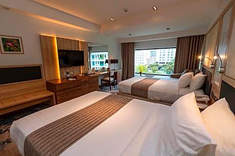 At Hotel Cambodiana, exceptional service and top-notch amenities create a memorable experience for guests. Complimentary internet access is available in the hotel to ensure you stay connected during your visit. Arrange your trips to and from the airport using the hotel's convenient transportation services booking. Discover the wonders of Phnom Penh with ease by utilizing the services provided by taxi, car hire and shuttle. Complimentary parking is available for guests. Continuously receive the support you require through front desk amenities such as concierge service, express check-in or check-out, luggage storage and safety deposit boxes.At the hotel, their ticket service and tours is also capable of assisting with booking tickets and securing reservations for entertainment and adventures. Chilly nights become more delightful than balmy ones, as you snuggle near the hotel's inviting hearth. Always look your best in your preferred attire with the dry cleaning service and laundry service provided at Hotel Cambodiana. Craving relaxation? In-room amenities such as 24-hour room service, room service and daily housekeeping allow you to maximize your time spent inside the room.Due to health concerns, smoking is strictly prohibited within the entire premises of hotel.For the health and well-being of all guests and staff, smoking is restricted exclusively to assigned zones. Accommodations come equipped with all the conveniences required for a restful night's slumber. A selection of rooms feature linen service, blackout curtains and air conditioning to ensure your comfort and convenience. A few chosen rooms are equipped with daily newspaper, television and cable TV to ensure guest amusement.In certain rooms, the hotel offers visitors access to a refrigerator, a coffee or tea maker, bottled water and mini bar.Hotel Cambodiana offers a hair dryer, toiletries and bathrobes in the restrooms of specific accommodations. A delightful breakfast is the perfect way to begin your day, and at Hotel Cambodiana, you can always indulge in a scrumptious meal on-site. All adore a delightful cup of coffee! An on-site coffee shop ensures you can relish a cup of authentic, freshly-brewed coffee every morning -- or whenever you desire it. Allow your journey to be free from the pangs of hunger! On-site eateries offer delicious and accessible meal choices.An evening spent within the hotel's bar and nightclub may prove to be just as entertaining as venturing out with your fellow adventurers. Are you inclined to prepare your own dishes? You will surely appreciate having the on-site BBQ facilities available. At Hotel Cambodiana, guests can take pleasure in the delightful recreational amenities provided for their entertainment.Conclude your days in complete tranquility by paying a visit to massage, steam room and sauna for ultimate relaxation. At Hotel Cambodiana, a wide array of amenities guarantees a fulfilling experience throughout your visit. Make your holiday truly memorable by taking a rejuvenating plunge into the pool. At Hotel Cambodiana, the poolside bar provides an excellent incentive to enjoy extended hours in your swimwear.At the hotel fitness center, you have the option to engage in your daily exercise routine or simply alleviate your jet lag by breaking a sweat.