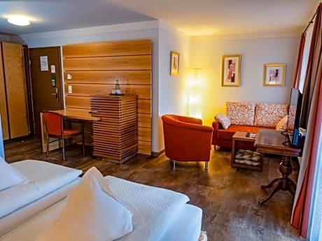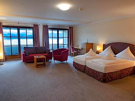 This charming and cozy hotel near Füssen is set in beautiful countryside on the shores of the Hopfensee lake and offers magnificent views of the Allgäu Alps. The Hotel Geiger has been family-run for decades and enjoys a long tradition of Bavarian hospitality. The rooms provide modern amenities such as cable TV, and both broadband and Wi-Fi internet access. The Hotel Geiger is an ideal base for visiting the nearby town of Füssen and the Forggensee lake. The royal palaces of Neuschwanstein and Hohenschwangau are also both within a 15-minute drive from here. Wake up to a rich complimentary breakfast. Enjoy homemade cakes and pastries in the afternoon. Treat yourself to traditional Allgäu cuisine in the chic terrace restaurant or in the rustic lounge. The beautiful natural countryside around the Hotel Geiger provides a perfect environment for hiking, cycling or fishing breaks. Relax in the hotel sauna and steam room.
