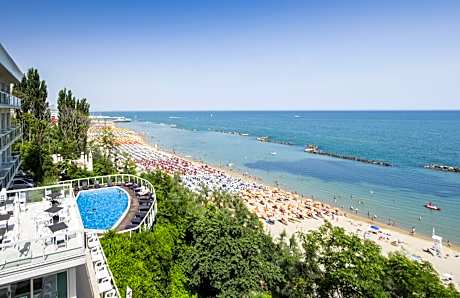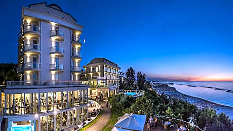 Choose the Hotel Sans Souci for a truly carefree beach holiday in Gabicce Mare. Located in a panoramic position a few steps from the seafront, the hotel offers excellent services. Cool off with a swim in the panoramic outdoor saltwater pool, where you can also enjoy aerobics or simply sunbathe on the sun loungers provided. There is also an indoor pool communicating with the outdoors, in the reception area of the bar. The garden and terrace allow you to enjoy a drink while admiring the view. Activities are organized here and on the nearby beach and in some months there is also a children's club. Most of the bright rooms at the Sans Souci have sea views, satellite TV and a balcony. Property also features free WiFi. Leave the surroundings quiet and stroll through the center of Gabicce Mare, less than a 10-minute walk away. Alternatively, you can play tennis or golf nearby. Choose one of the Sans Souci's two restaurants, both with sea views. Local cuisine is served and special menus for children and sports enthusiasts are available. Our All Inclusive Formula which will include during your whole stay: - Drinks at the Restaurant meals as mineral water, draft beer, local wines DOC and soft drinks. - Beach service with one umbrella and two sunbeds from the 4th row upwards, per room. Bag with beach License Number(s): 041019-ALB-00067, IT