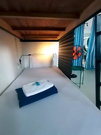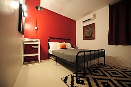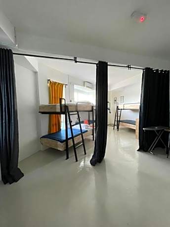 Guests can make meals in the kitchenette that is fitted with a refrigerator, kitchenware, a tea and coffee maker and a toaster. A seating area with a TV, a desk and a shared bathroom are featured in this dormitory room. The unit offers 4 beds.