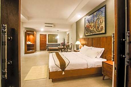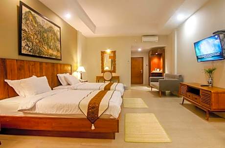 Located in Borobudur, a 16-minute walk from Borobudur Temple, Khanaya Hotel Borobudur provides accommodations with a garden, free private parking, a restaurant and a bar. The property is around 25 miles from Yogyakarta Tugu Train Station, 25 miles from Tugu Monument and 26 miles from Malioboro Mall. The hotel has pool views, an outdoor pool and a 24-hour front desk. At the hotel all rooms come with air conditioning, a desk, a terrace with a mountain view, a private bathroom, a flat-screen TV, bed linen and towels. All guest rooms feature a closet. The daily breakfast offers buffet, à la carte or Asian options. Yogyakarta Presidential Palace is 26 miles from Khanaya Hotel Borobudur, while Fort Vredeburg is 26 miles from the property. Adisutjipto Airport is 30 miles away, and the property offers a paid airport shuttle service.